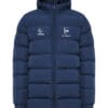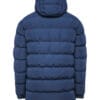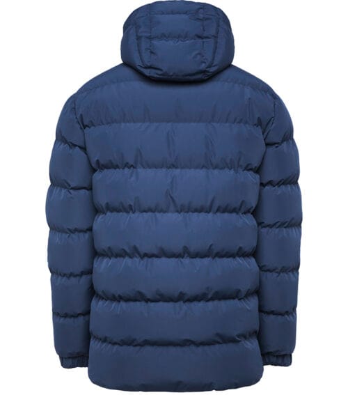 Chaqueta acolchada con relleno tacto pluma y capucha fija ajustada. · Cremallera invertida a tono con protector de barbilla. · Dos bolsillos laterales con cremalleras. · Ribete elástico a tono en puños, bajos y apertura de capucha. · Forro interior a contraste. Incluye bolsa de transporte. · Prenda ligera y plegable.