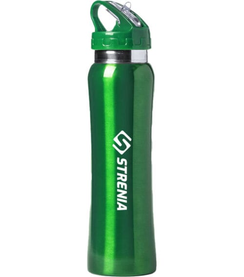 Bidón de acero inoxidable en alta calidad y de gran capacidad: 800 ml. Sistema de fácil apertura libre de BPA y asa de transporte a juego.