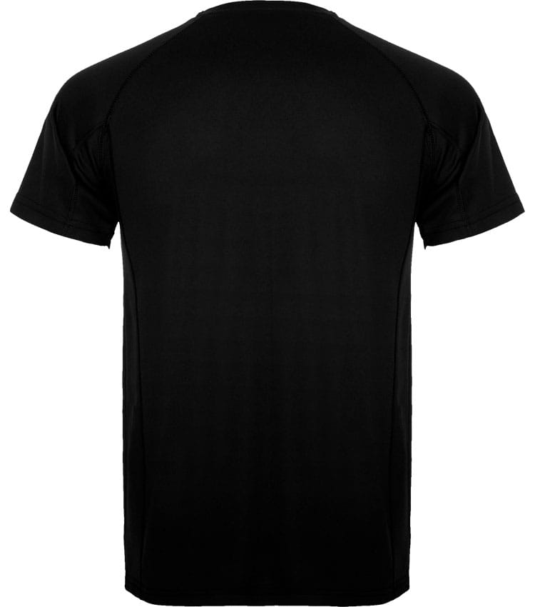 Camiseta técnica manga ranglán transpirable. Paneles laterales. Cuello redondo y cubrecosturas del mismo tejido al tono (Certificado UV).