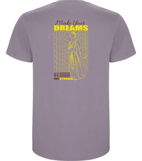 Camiseta de manga corta confeccionada con tejido 100% algodón de punto liso de 190g/m². Tejido color gris vigoré: 85% algodón y 15% viscosa. Cuello redondo con elastano. Tubular en tallas de adultos, costuras laterales en talla de niño. Estampado con técnica DTF.