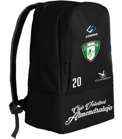 Mochila deportiva con diseño ergonómico y de fácil personalización. Doble asa reforzada para hombros y asa especial de mano. Respaldo acolchado en los puntos de apoyo principales sobre la espalda. Bolsillo zapatillero. Un bolsillo principal con doble tirador y un bolsillo frontal exterior de menor capacidad.
