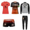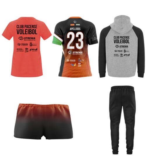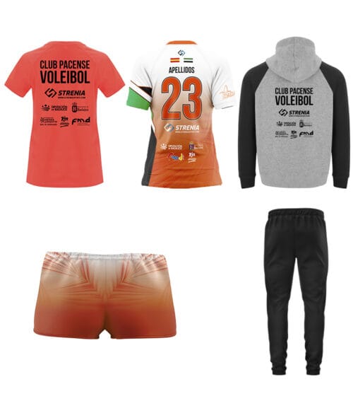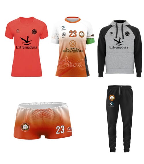 El pack está compuesto por dos camisetas de entrenamiento, una camiseta de juego, una malla, un pantalón largo y una sudadera.