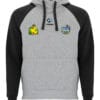 Sudadera 100% algodón con capucha de doble tejido, con cordón ajustable, en acabados solido y bicolor. Cubrecosturas en el cuello. Punto canalé con elastano 1×1 en puños y cintura.